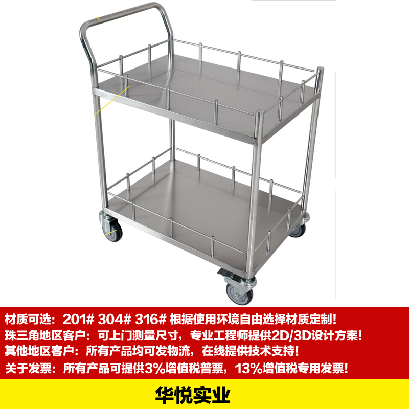 不鏽鋼手推(tuī)車(chē)特點外(wài)觀精美、是(shì)一種平麵(miàn)運輸(shū)設備,它在大(dà)小範圍內作業的方便性、實用性能適合大多數條件下少量(liàng)、小範圍的臨時短途運輸,無聲靜音,手感超(chāo)好、結實耐用、承載力好、自由移動 、走行輕快:由於腳輪采用了特殊的設計,減輕了(le)始動抵抗和走行抵抗(kàng)。使本產品達到了走行輕快(kuài)化、平整、安全,強(qiáng)度(dù)好、美觀、耐用,耐酸、耐堿(jiǎn)、防鏽(xiù)、輪子可采用防靜(jìng)電靜音(yīn)輪、普通(tōng)輪。歡迎新老客戶來電洽(qià)談!